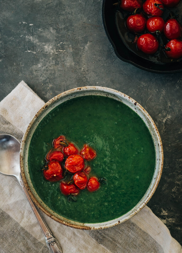 Espinaca cruda: 2 atados Cebolla colorada o blanca picada: 1 Ghee o aceite de coco: 2 cdas. soperas Harina de arroz: 3 cdas. Leche vegetal: 500 c.c. Agua de cocción de las espinacas: 500 c.c. Aceto balsámico, nuez moscada, sal…